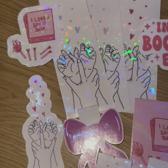 Magnetic bookmark holographic vinyl design varies on availability.